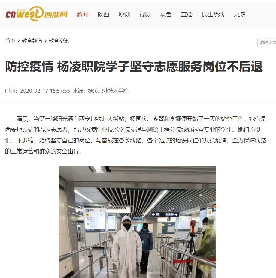 【西部网】防控疫情 杨凌职院学子坚守志愿服务岗位不后退
