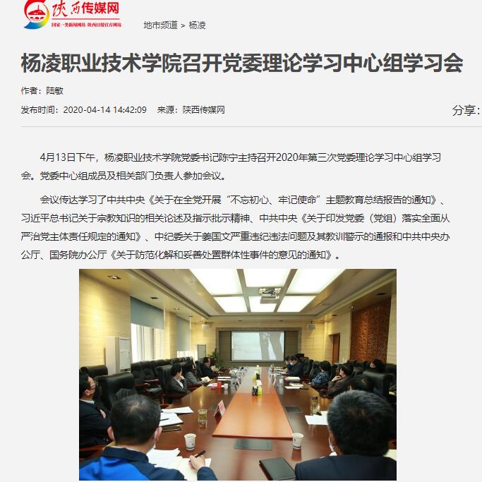【陕西传媒网】杨凌职业技术学院召开党委理论学习中心组学习会