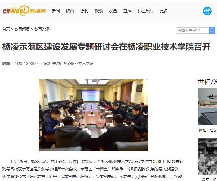 12月25日,杨凌示范区党工委副书记刘天雄带队,到杨凌职业技术学院听取学校有关部门和科教专家对筹备杨凌示范区建设领导小组第十次会议、示范区“十四五”和今后一个时期建设发展的意见及建议。杨凌职业技术学院党委书记陈宁,党委副书记任得元,党委副书记、纪委书记刘粉莲,副校长张迪、祝战斌,党政办公室、教务处、产教融合处、科技与教育研究处、各分院负责人及相关教师代表参加了研讨会。