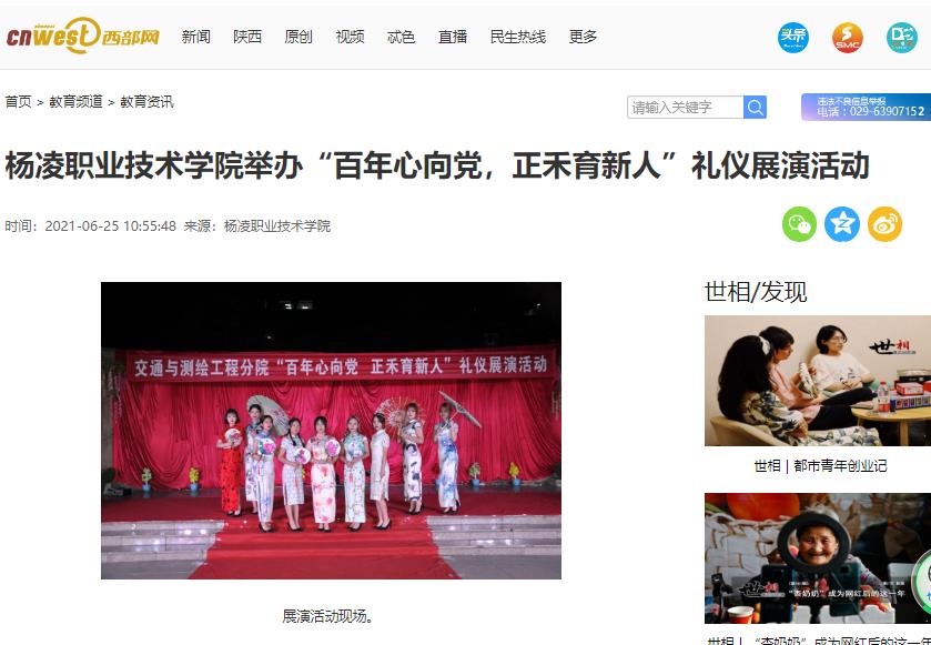 6月21日,杨凌职业技术学院交通与测绘工程学院举行“百年心向党,正禾育新人”礼仪展演活动。杨凌职业技术学院副校长祝战斌、党委宣传部部长裴红波、团委书记陈吼、交通与测绘工程学院院长张养安、党总支副书记邓留坤及师生共800余人参加了活动。