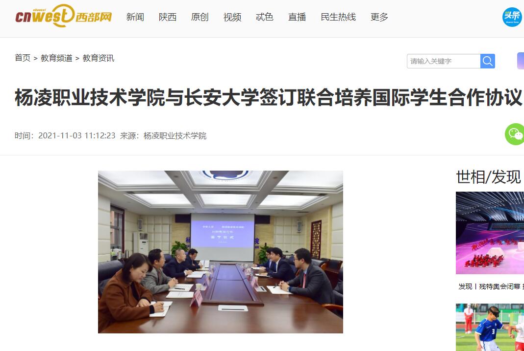 在杨凌职业技术学院副校长胡俊鹏的见证下,张伟与裴红波代表双方签订联合培养国际学生合作协议。根据协议,双方将在开展国际学生本专科联合培养和在杨凌职院设立“长安大学国际学生实习实训基地”等方面开展合作,联合培养国际学生采用“3+2”模式进行(即在杨凌职院就读前三年课程,在长安大学就读后两年课程),专业包括交通运输类、经济管理类、信息类和机械类等,双方根据教学计划进行课程和学分互认,国际学生在满足本科毕业要求后,可获得长安大学本科毕业证书。