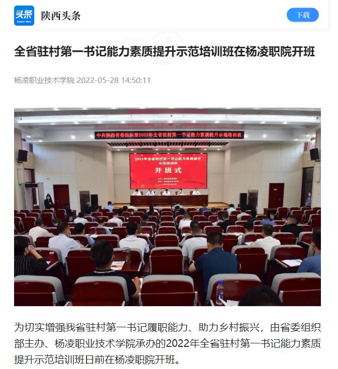 为切实增强我省驻村第一书记履职能力、助力乡村振兴,由省委组织部主办、杨凌职业技术学院承办的2022年全省驻村第一书记能力素质提升示范培训班日前在杨凌职院开班。