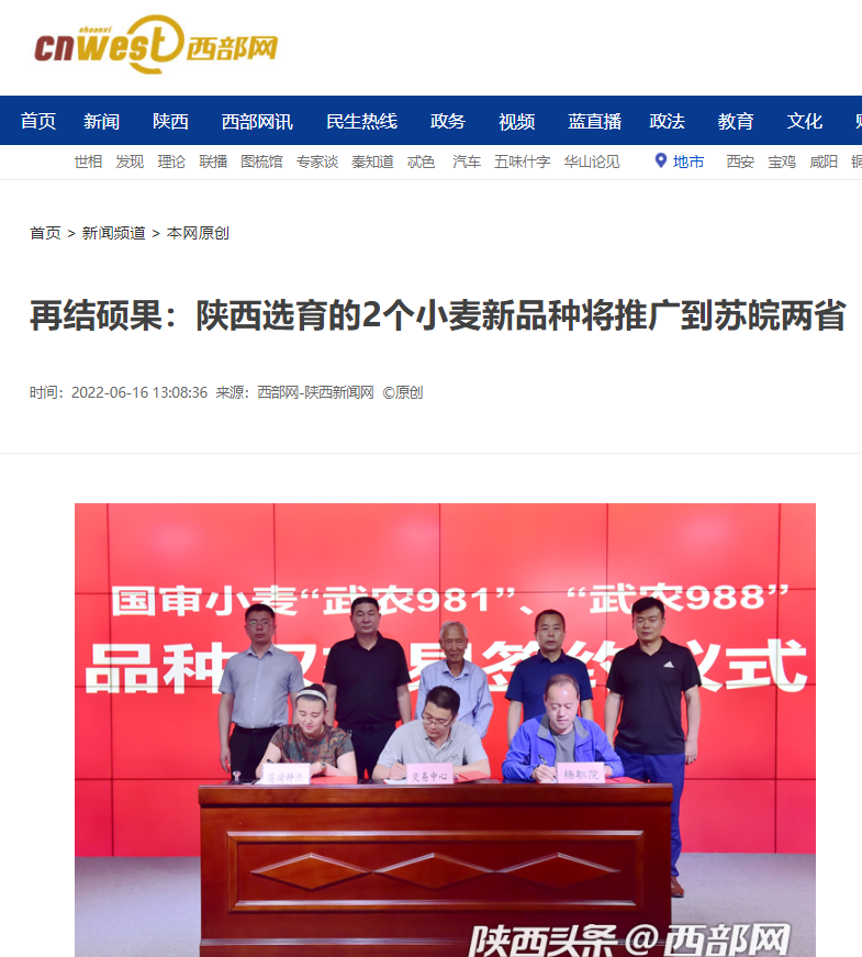 根据杨凌职院、国家(杨凌)旱区植物品种权交易中心和河南开封莲瑜种业共同签订的“武农981”和“武农988”小麦品种权实施许可协议,这2个新的小麦品种将被许可在江苏和安徽小麦主产区生产、包装、推广和销售。
