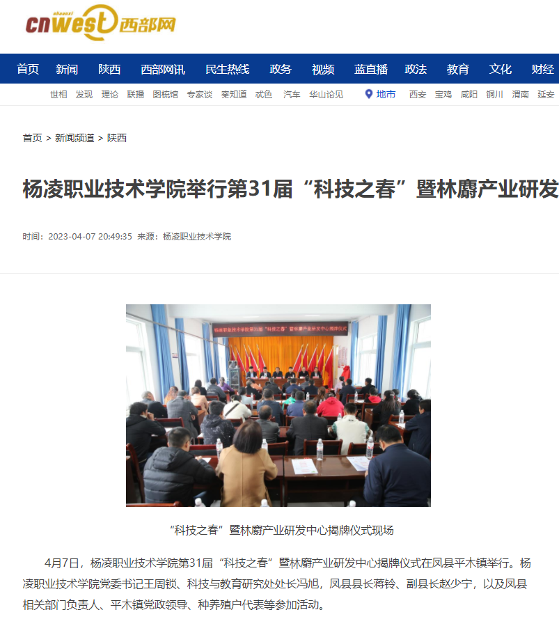 【西部网】杨凌职业技术学院举行第31届“科技之春”暨林麝产业研发中心揭牌仪式