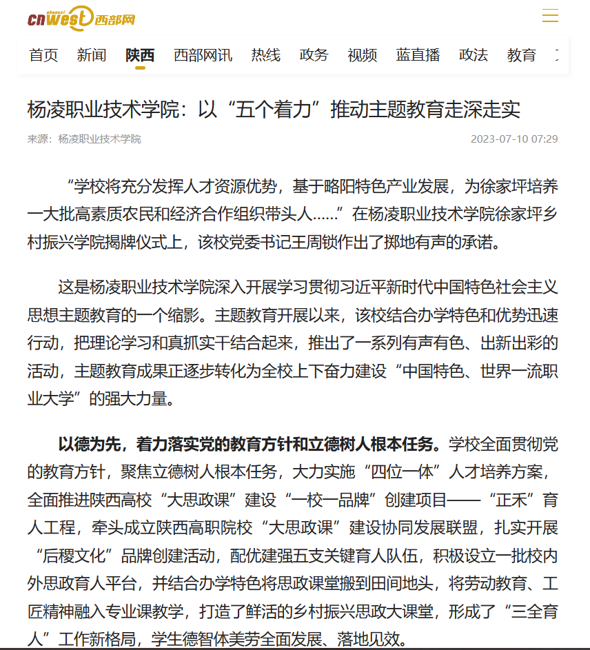 【西部网】杨凌职业技术学院:以“五个着力”推动主题教育走深走实