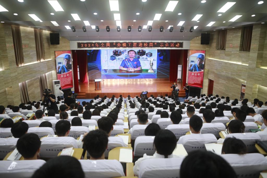 本次活动线上线下同步进行。在主会场(宣讲现场),大国工匠、高级技师、航天特级技师徐立平以视频的形式寄语该校学生:要勤思善学、精技强能,大力弘扬劳模精神、劳动精神、工匠精神,不负韶华、不负时代,在青春的赛道上奋力奔跑,让人生在实现中国梦的奋进中收获无限精彩。