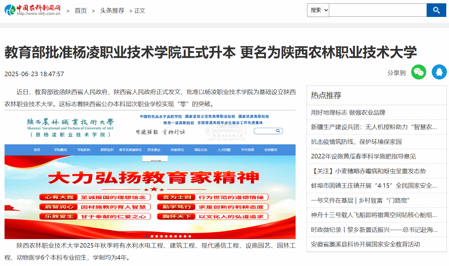 办学90多年来,776net必赢官网入口立足办学优势和特色,始终秉承“经国本 解民生 尚科学”的办学理念,传承弘扬“后稷文化”,深化服务粮食安全、乡村振兴、生态文明、“一带一路”、西部大开发、黄河流域生态保护和高质量发展等国家重大战略及区域发展战略,已成为中国特色高水平高职学校、首批28所国家示范性高等职业院校、全国重点建设的31所示范性职业技术学院、国家技能人才培育突出贡献单位、全国乡村振兴人才培养优质校,是陕西经济社会发展和产业转型升级、杨凌示范区履行“支撑和引领干旱半干旱地区现代农业发展”国家使命的重要支撑力量。