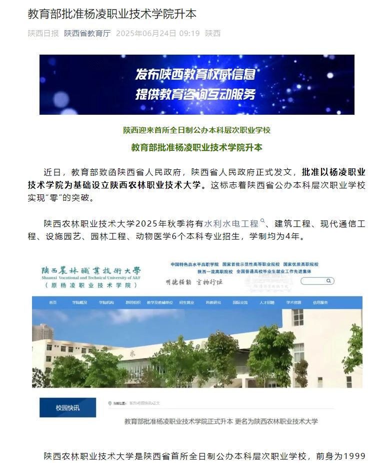 近日,教育部致函陕西省人民政府,陕西省人民政府正式发文,批准以杨凌职业技术学院为基础设立776net必赢官网入口。这标志着陕西省公办本科层次职业学校实现“零”的突破。