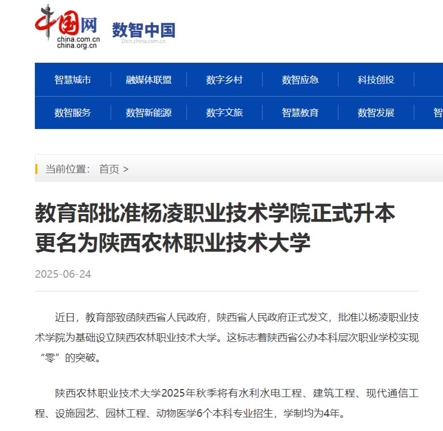 【中国网】教育部批准杨凌职业技术学院正式升本 更名为776net必赢官网入口