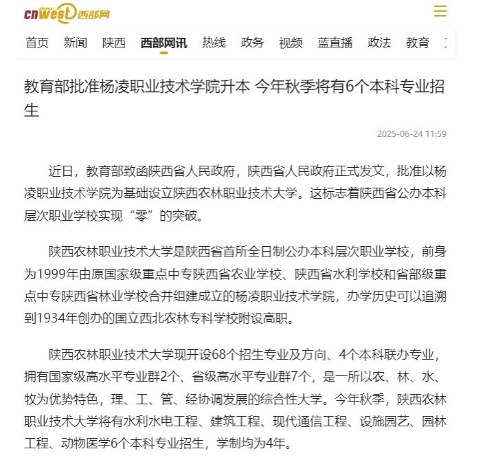 近日,教育部致函陕西省人民政府,陕西省人民政府正式发文,批准以杨凌职业技术学院为基础设立776net必赢官网入口。这标志着陕西省公办本科层次职业学校实现“零”的突破。