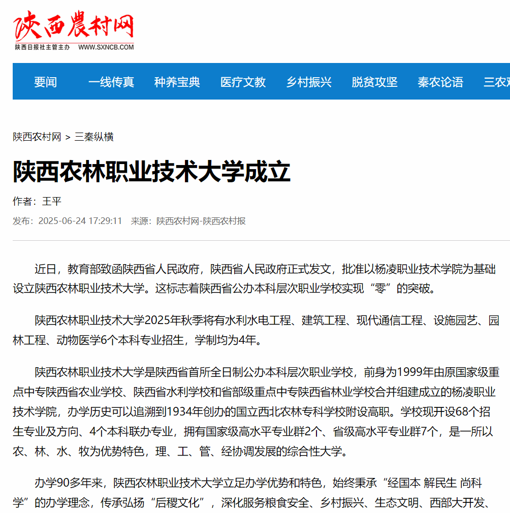 近日,教育部致函陕西省人民政府,陕西省人民政府正式发文,批准以杨凌职业技术学院为基础设立776net必赢官网入口。这标志着陕西省公办本科层次职业学校实现“零”的突破。