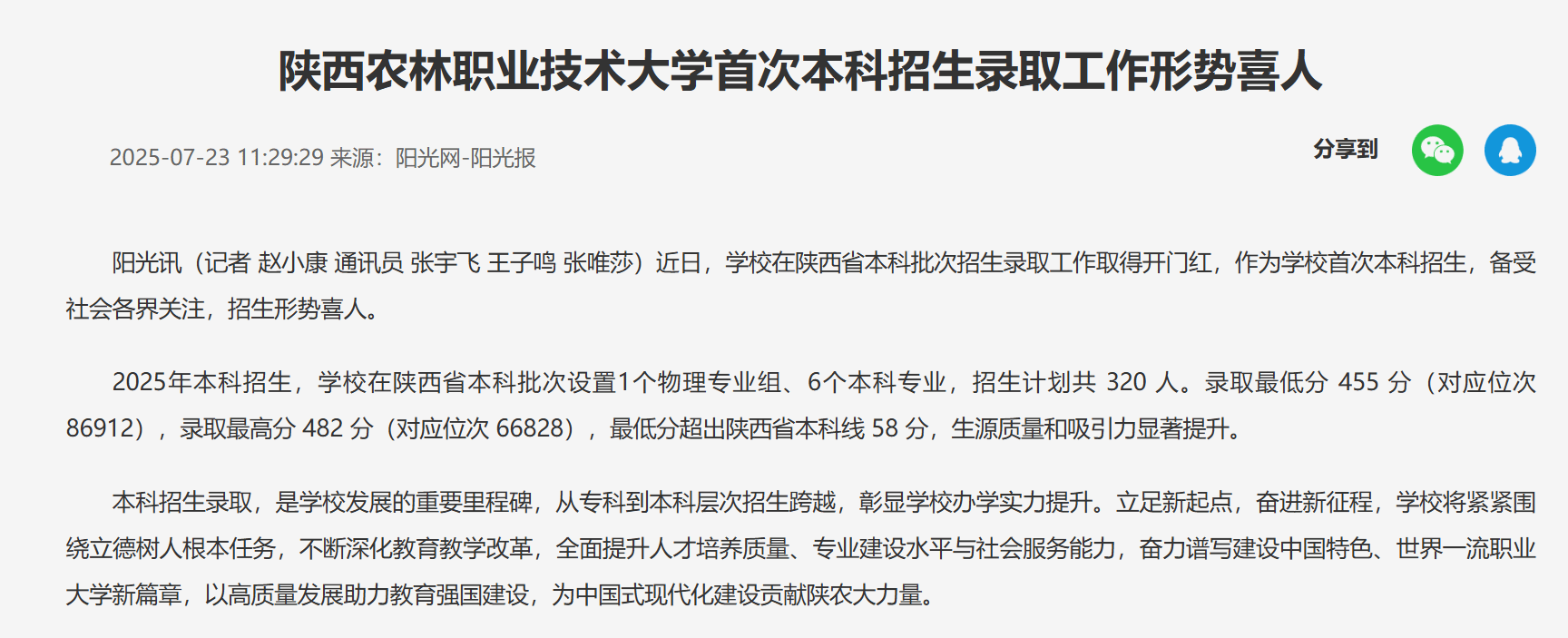 阳光讯(记者 赵小康 通讯员 张宇飞 王子鸣 张唯莎)近日,学校在陕西省本科批次招生录取工作取得开门红,作为学校首次本科招生,备受社会各界关注,招生形势喜人。