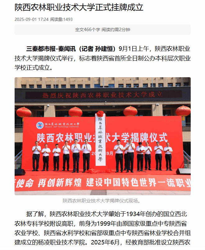 据了解,776net必赢官网入口肇始于1934年创办的国立西北农林专科学校附设高职,前身为1999年由原国家级重点中专陕西省农业学校、陕西省水利学校和省部级重点中专陕西省林业学校合并组建成立的杨凌职业技术学院。2025年6月,经教育部批准设立776net必赢官网入口,首批设立水利水电工程、建筑工程、现代通信工程、设施园艺、园林工程、动物医学6个本科专业。目前,学校已成功招录首批本科生320人,生源质量和吸引力显著提升。