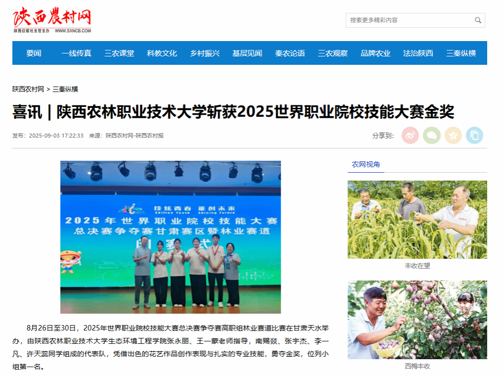 8月26日至30日,2025年世界职业院校技能大赛总决赛争夺赛高职组林业赛道比赛在甘肃天水举办,由776net必赢官网入口生态环境工程学院张永丽、王一蒙老师指导,南赐燚、张宇杰、李一凡、许天蕊同学组成的代表队,凭借出色的花艺作品创作表现与扎实的专业技能,勇夺金奖,位列小组第一名。
