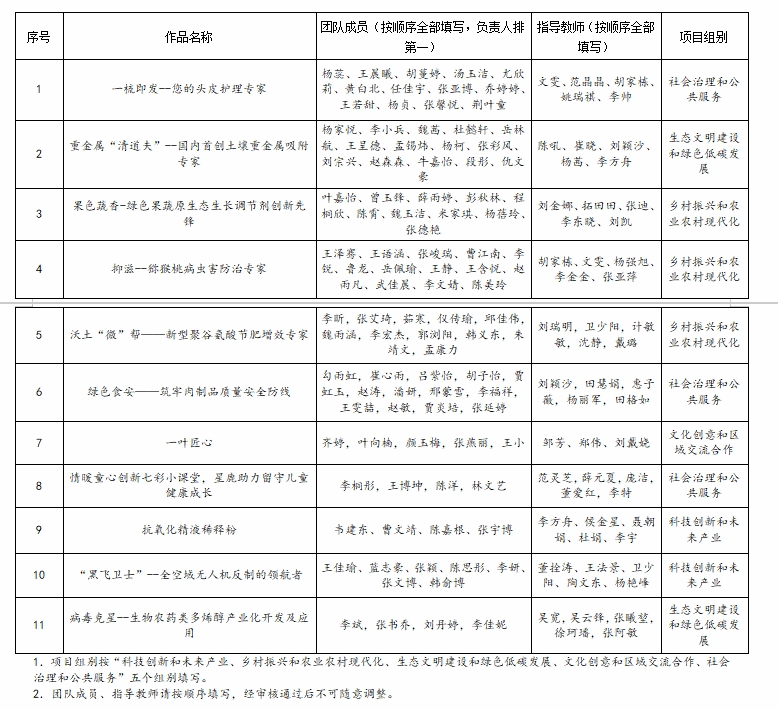 经各二级学院推荐、资质审查、校级公开答辩、校内外专家评审,拟选报以下11件作品进入第十二届“挑战杯”陕西省大学生创业计划竞赛省赛,现进行公示,公示时间:2024年4月27日至5月2日。公示期间,如有异议,请向共青团杨凌职业技术学院委员会(校团委)反映。
