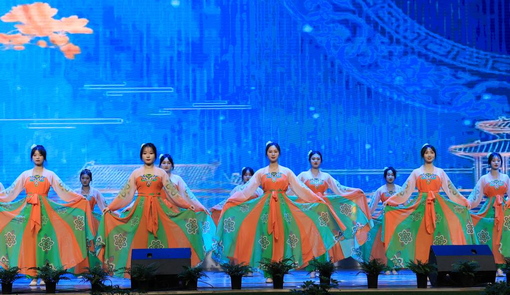 文艺汇演包括校大学生艺术团及11个二级学院选送的节目,充满青春朝气和活力的舞蹈《奔跑吧青春》率先将舞台点燃,辅导员代表表演了朗诵《请党放心,强国有我》、话剧《青春之我》、藏族舞蹈《天湖之舞》、歌曲《字里行间》等节目,给现场观众带来了一幕幕华彩的视听盛宴。