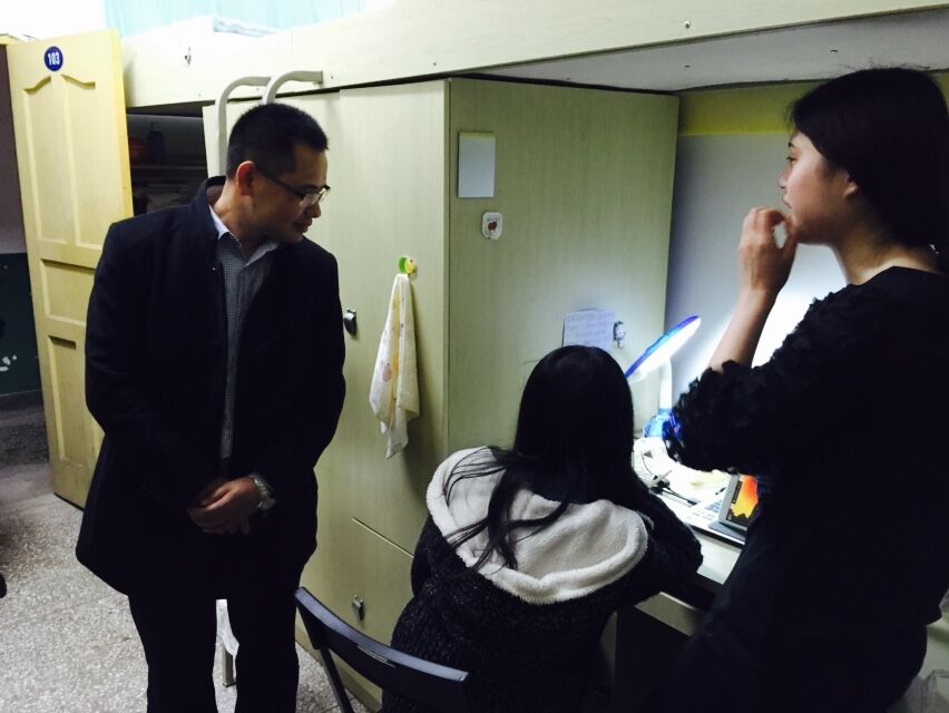 在走访过程中,学院领导、老师与学生们亲切交谈,询问他们的学习、生活状况,叮嘱他们及时增添衣服,应对天气变化。并通过交流进一步了解学生生活、心理和学习状态,同时勉励同学们在学好专业知识的同时要多参加有意义的集体活动,培养自己的综合素质,做一个全面发展的复合型人才。