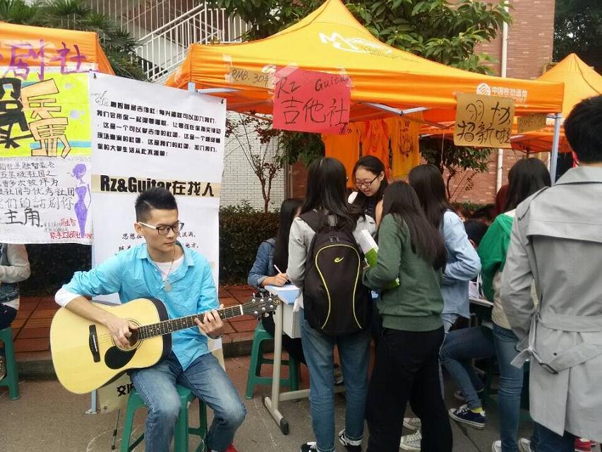 (通讯员:柳林 郑雪)为丰富在校大学生课余生活,提高学生自我素质修养,实现学生多元化发展。我院社团联合会于2014年10月21、22日在学生宿舍四舍楼下组织了社团招新活动。