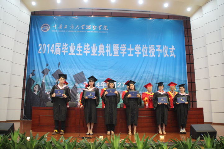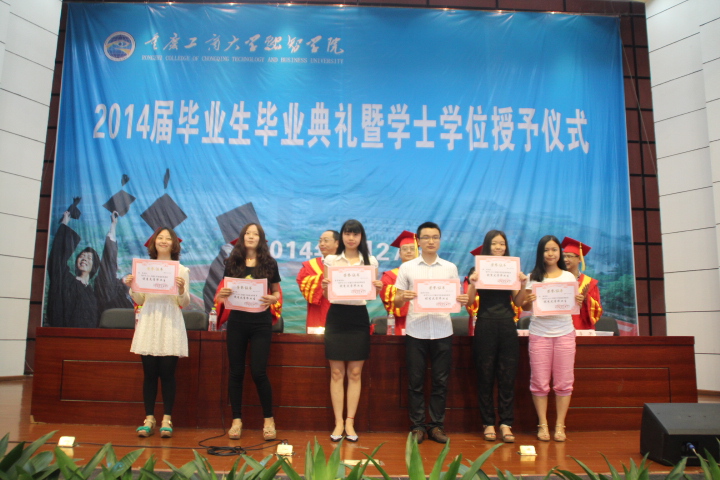 学院党委书记丁广龙宣读了《重庆市教育委员会关于表彰2014年普通高等教育优秀毕业研究生和优秀大学毕业生的通报》、《关于表彰2014届优秀毕业生的决定》和《关于对温谦等30名考取硕士研究生的2014届毕业生予以奖励的决定》,学院领导分别为2014届优秀毕业生和考取硕士研究生的学生颁奖,并鼓励他们更进一步。随后,学院党委副书记陈龙国宣读《关于准予毕业的决定》和《关于授予学士学位的决定》学院领导分别为毕业生代表授位。接着,李果助理代表学院接受会计系向母校赠送的礼品。毕业生代表游登贵和教师代表杨小梅分别上台发言。