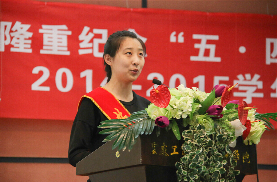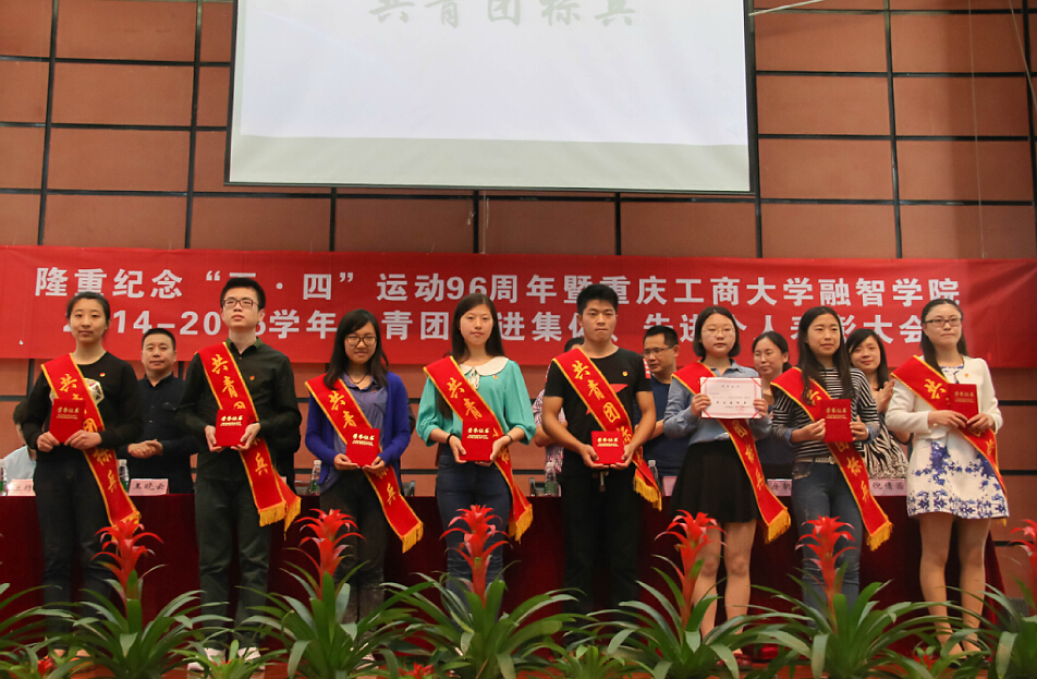 大会在嘹亮的国歌声中拉开帷幕。我院党委副书记陈龙国宣读表彰文件,其后台上领导相继为优秀团员、优秀团员干部、优秀社团、最佳团日活动、共青团标兵、五四红旗团支部及五四红旗团总支代表进行颁奖。获奖代表也结合自身实际和心得体会分享了获奖感言,其中,“优秀团干”代表李永权同学的讲话,让人印象深刻,在对学院领导和老师表示感谢的同时,他用幽默风趣的话语和事例,向在场观众证明了“男神不仅需要颜值,更加需要好的学习态度和独立的工作风格”这一观点。之后,我院丁广龙书记发表讲话,他从史实谈起,结合两会时事,指出当今学子在继承“五四精神”、面对社会负能量、弘扬社会正能量等问题中,应该分别学会责任和担当;要客观、公正地对待祖国母亲;坚持心正志坚,以爆发青年人的力量。大会最后,全体人员齐唱团歌。至此,我院2014-2015学年度纪念“五·四”运动96周年暨共青团先进集体、先进个人表彰大会圆满落幕。
