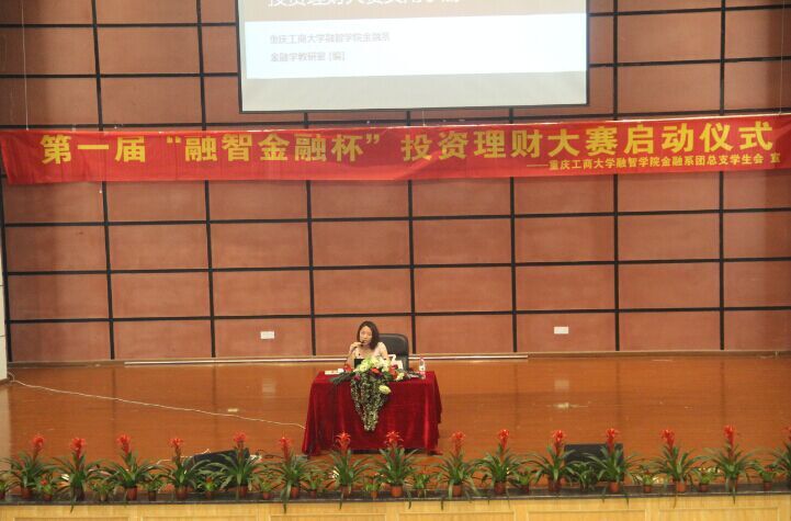 (通讯员 朱琳 谭琦)2015年5月6日下午由我院金融系主办的第一届“融智金融杯”模拟投资理财大赛启动仪式在学术报告厅顺利举行。出席本次活动的有学院副院长吴华安,党委副书记陈龙国,教务处副处长周雄,团委副书记李刚,金融系副主任崔中山,金融系党总支副书记唐川川,金融系金融学教研室副主任郭静林,华安证券重庆分公司营销部总监钱森。
